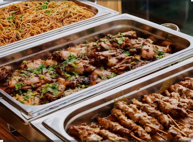 De BBQ bestaat uit 5 stukken vlees, salades, brood en sauzen. Vega/halal of glutenvrij zijn leverbaar. Neem vrijblijvend contact op met BBQ&Catering om uw wensen te overleggen. (15 personen is het minumum aantal dat in rekening wordt gebracht)
